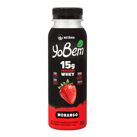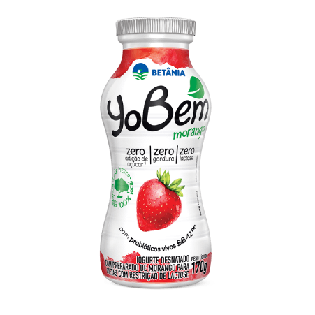 -Ingredientes: Leite desnatado e/ou leite em pó desnatado reconstituído, concentrado proteico de leite, concentrado proteico de soro de leite, preparado de morango (água, morango, amido, corante carmim, conservante sorbato de potássio, estabilizante pectina, acidulante ácido cítrico, aromatizante, edulcorantes sucralose e acessulfame de potássio), amido modificado, fermento lácteo, enzima lactase, aromatizantes, estabilizante pectina, corante carmim e edulcorante sucralose.